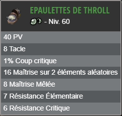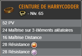 Build lvl 65Epique - Relique Les meilleursOption low costCasque Les meilleursOption low costAmulette Les meilleursOption low costPlastron Les meilleursOption low costAnneaux Les meilleursOption low costBottes Les meilleursOption low costCape Les meilleursOption low costEpaulettes Les meilleursOption low costCeinture Les meilleursOption low costCorps-à-corps Les meilleursOption low costSeconde main Les meilleursOption low costEmblème Les meilleursOption low cost